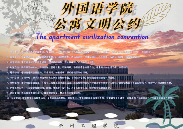 本次比赛主题是将公寓文明的理念融入海报设计,针对宿舍文明的维护建言献策。同学们积极围绕主题进行设计,最终征集到数十份作品,创意十足的设计展现了大家对宿舍文明的独特理解和积极态度。比赛过程中同学们从多方面了解到宿舍文明的重要性,并提升自身的审美和创新能力。