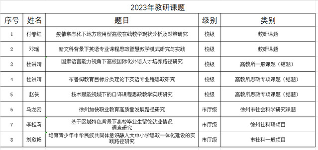 2023年,william威廉英国官网教学改革项目8项,其中市厅级3项,校级5项